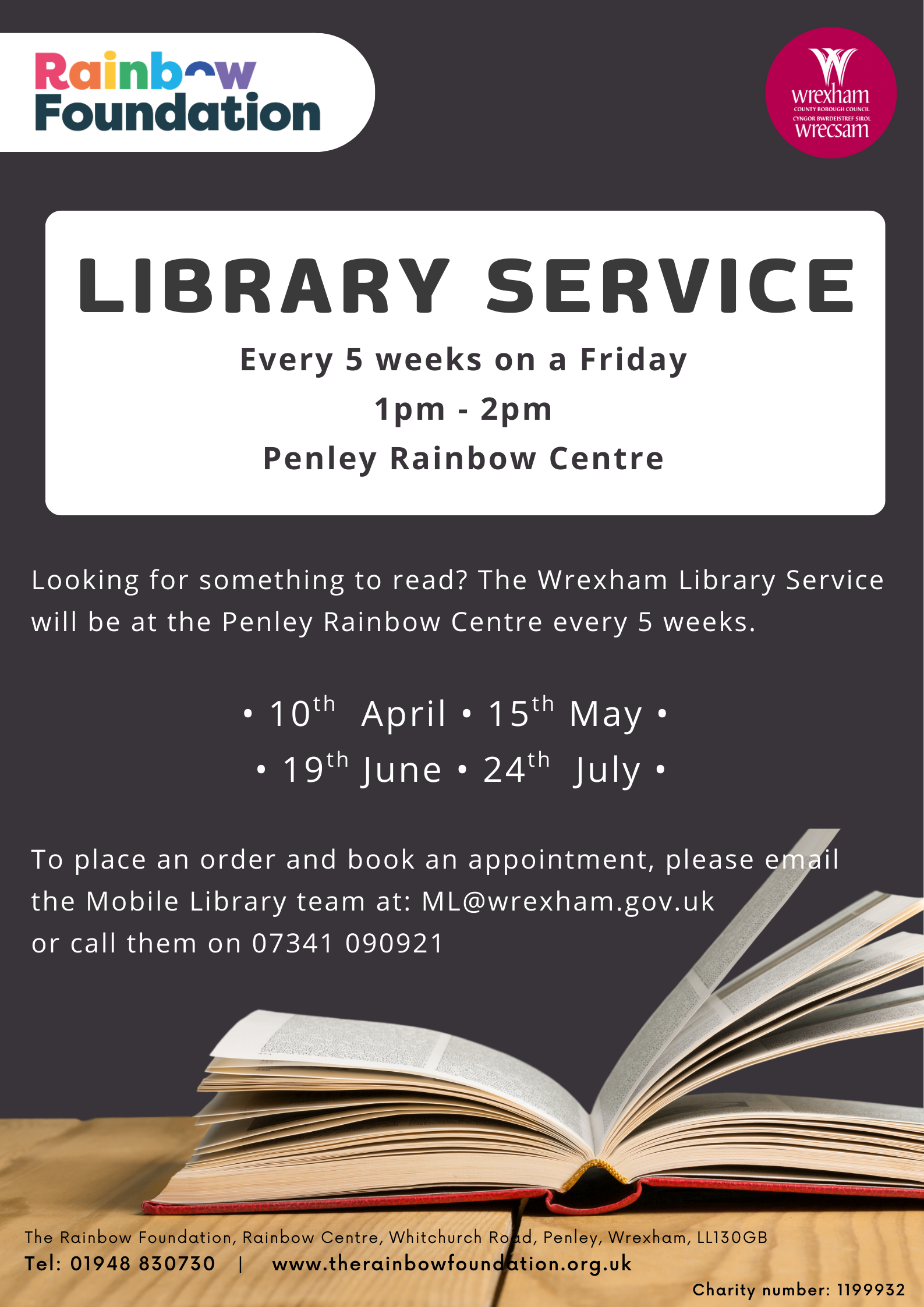 The Wrexham Mobile Library Service is available at the Penley Rainbow Centre every 4 weeks from 1pm – 2pm.